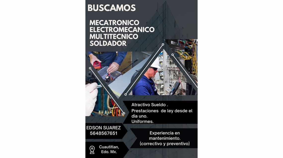 Estamos en busca de técnicos electromecanicos y Mecatrónicos